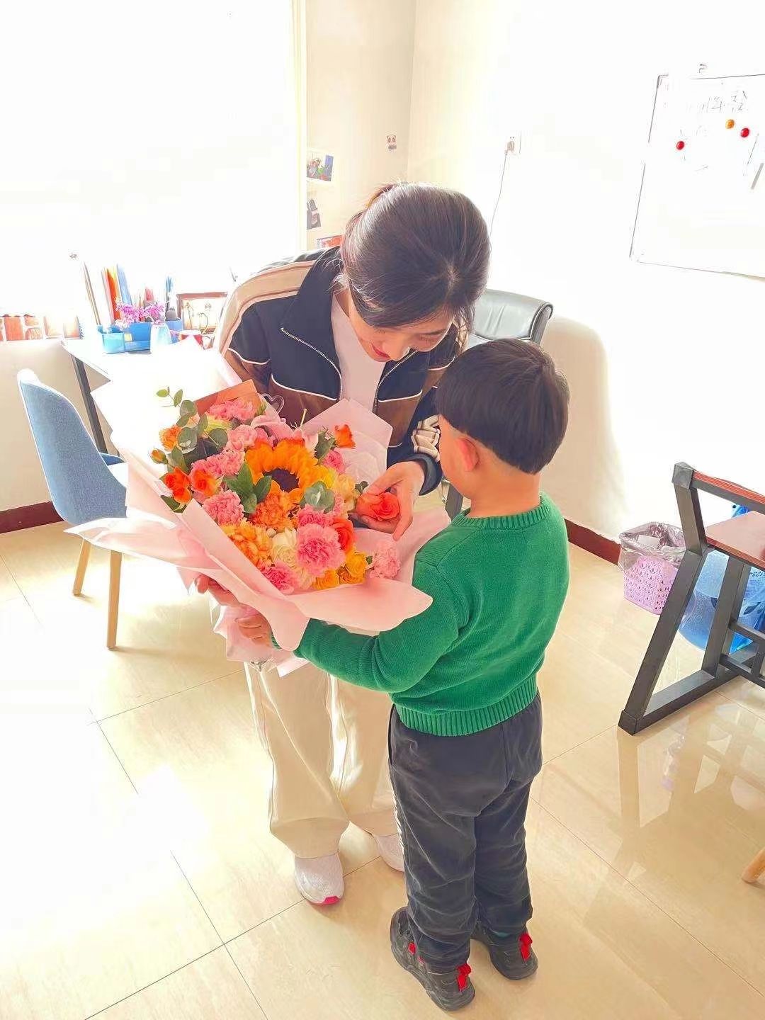 家长陪同孩子年底来看老师
